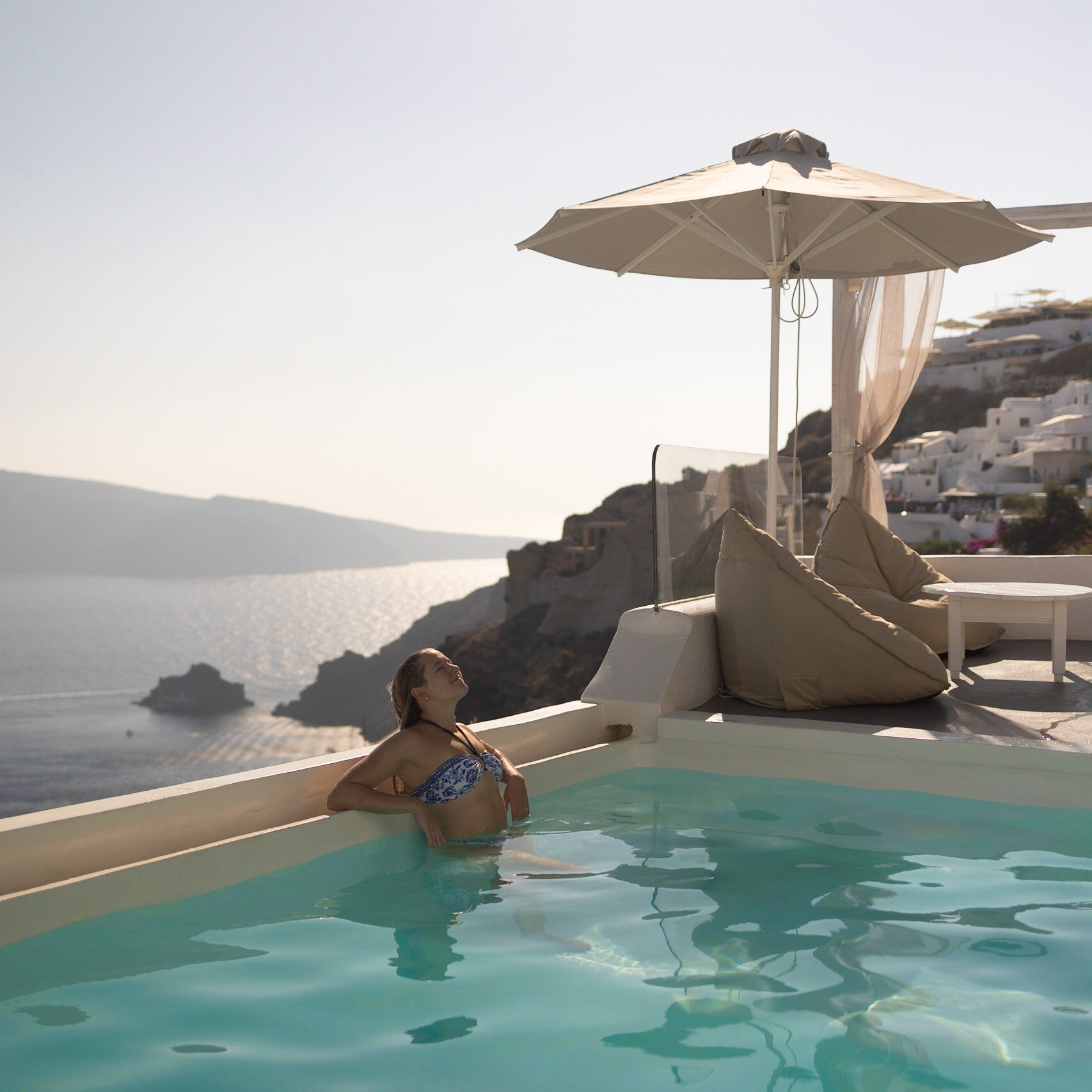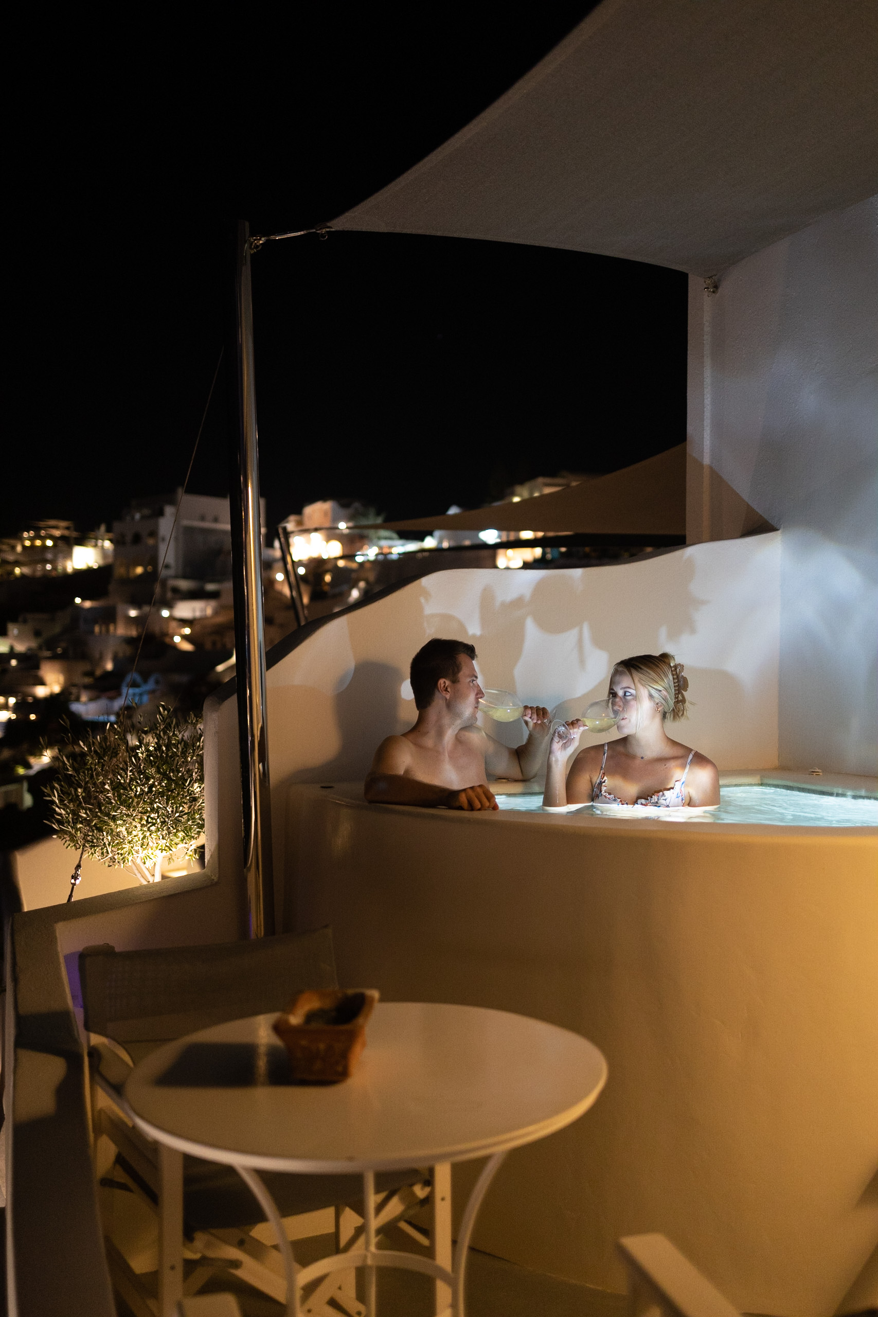 Like I mentioned earlier Kima Oia Suites was an amazing boutique hotel and our room included a private jacuzzi as many of the hotels in Oia do. There was nothing like sitting in that jacuzzi with a glass of wine after a long day of exploring. Looking out at the now lit up cliffside and feeling the night breeze. Truly romantic.