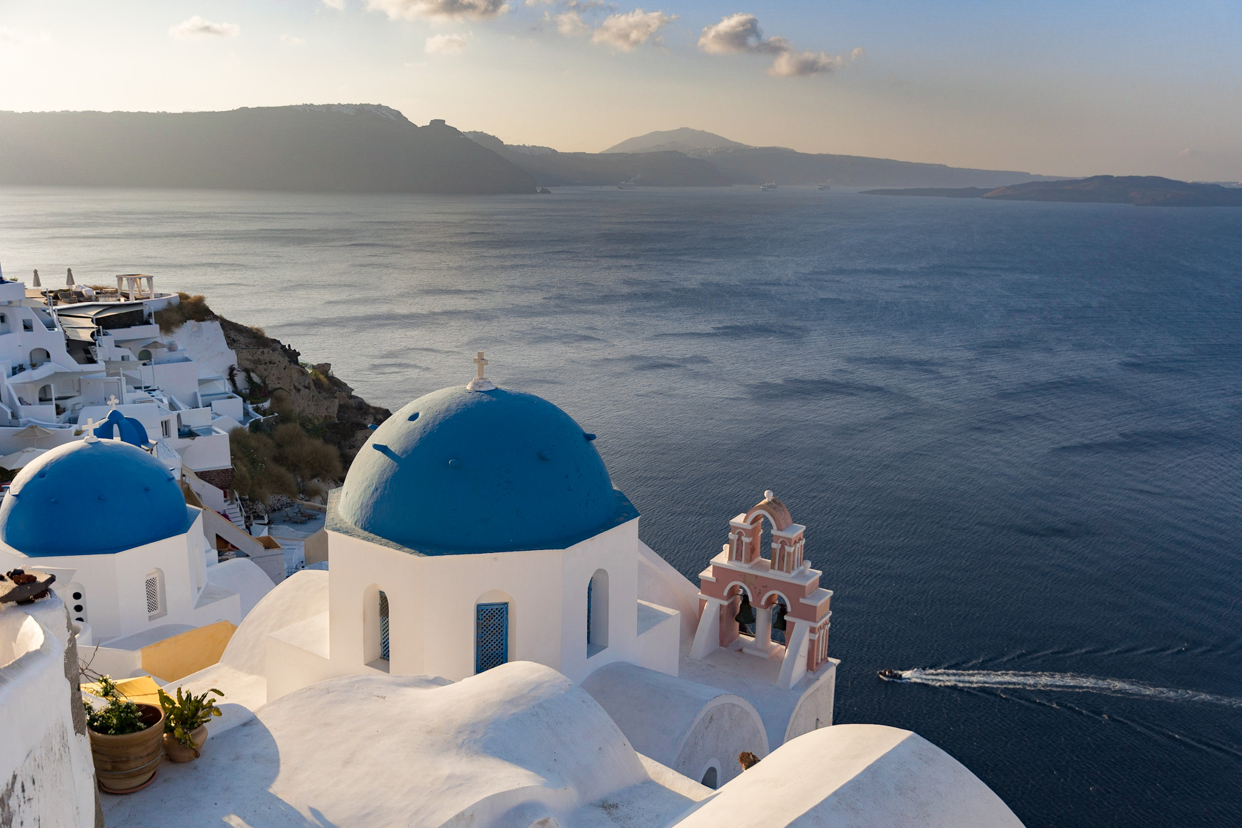 A short distance before you turn down the path that leads you to the three blue domes you’ll find another breathtaking photo location. On Google maps this church is technically called “Kirche des hl Johannes der Täufer.” You can also find it by looking up Aspaki Exclusive Suites as this hotel is right by this location. We also arrived early in the morning for this spot as it was already getting busy by the time the sun was lighting up the city.