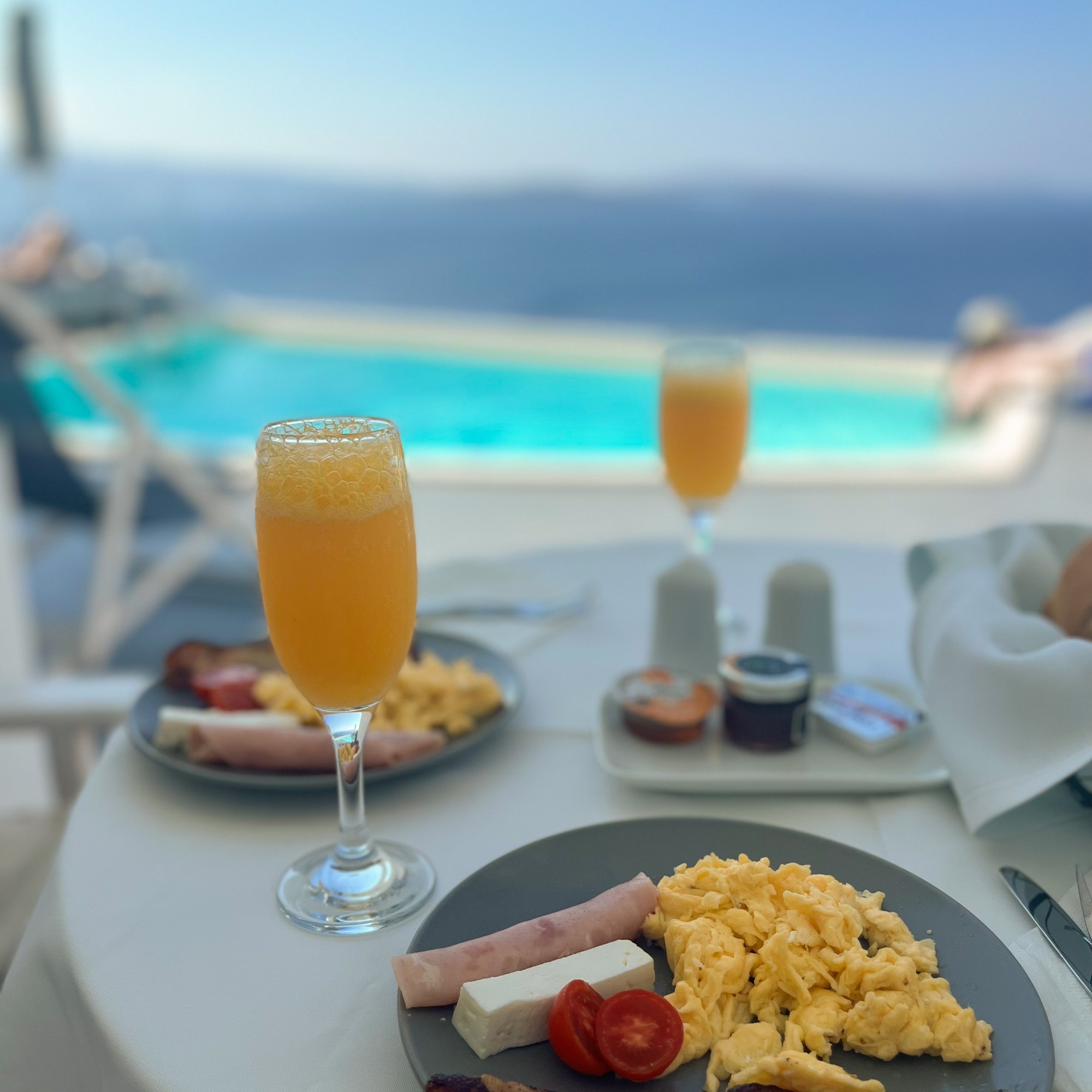 Our breakfast at Terpsi just might have been my favorite part of our entire trip. This restaurant looks directly out above the iconic 3 blue domes. This was my first time to Greece and after dropping off luggage off at the hotel on our first day we headed straight there. I almost started crying as I saw with my own eyes the scene that I had dreamed about for years.