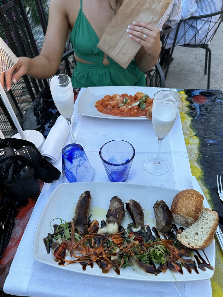 On our first night we had an amazing dinner at Bruno. Make sure you make a reservation so you can be seated right along the edge of the street to look out at the beautiful views of the beach and town. Make sure you order the lemon sorbet limoncello spritz. Amazing.