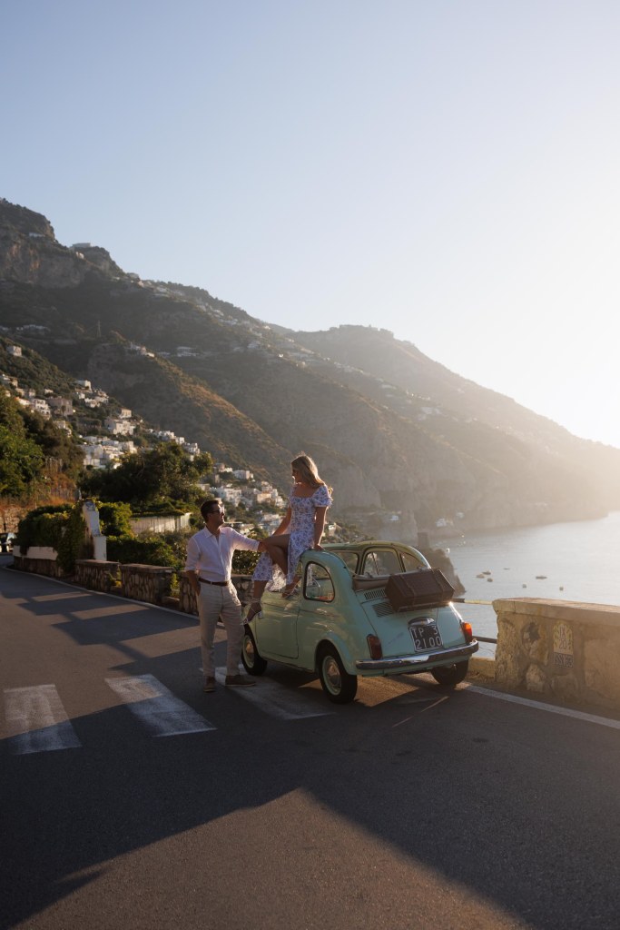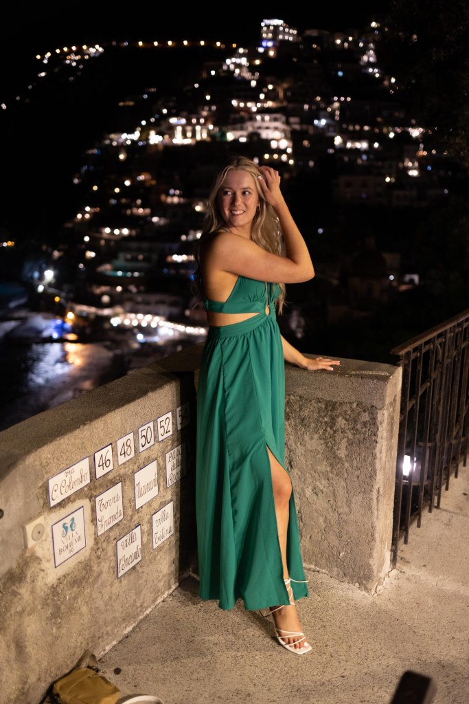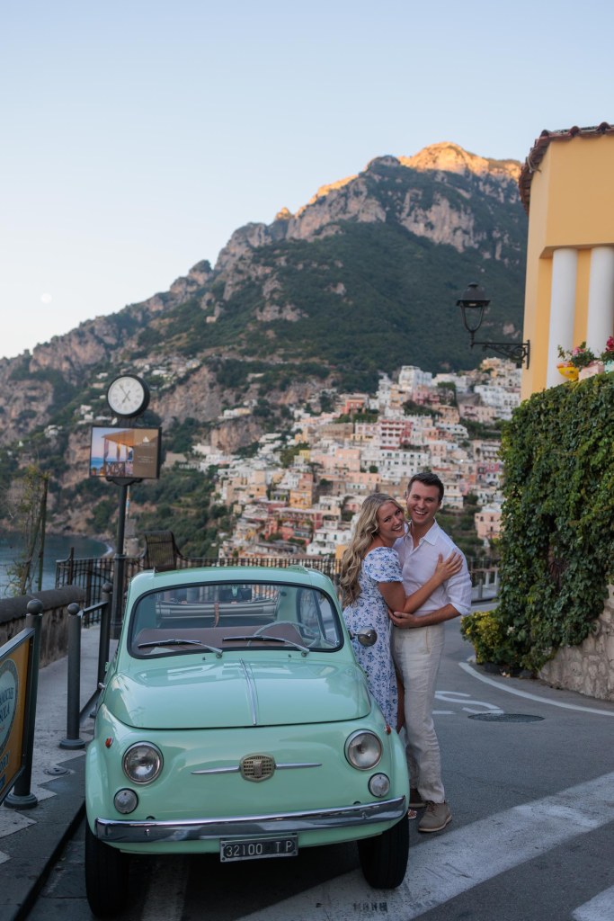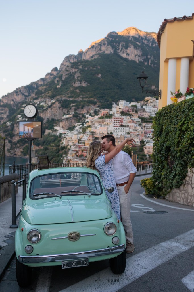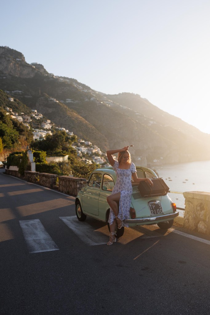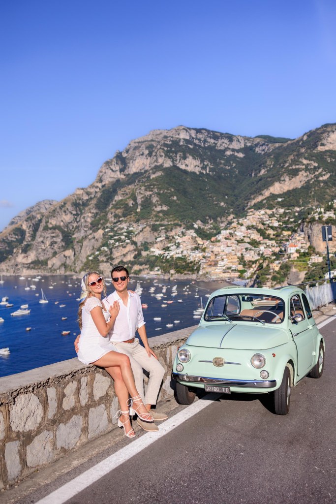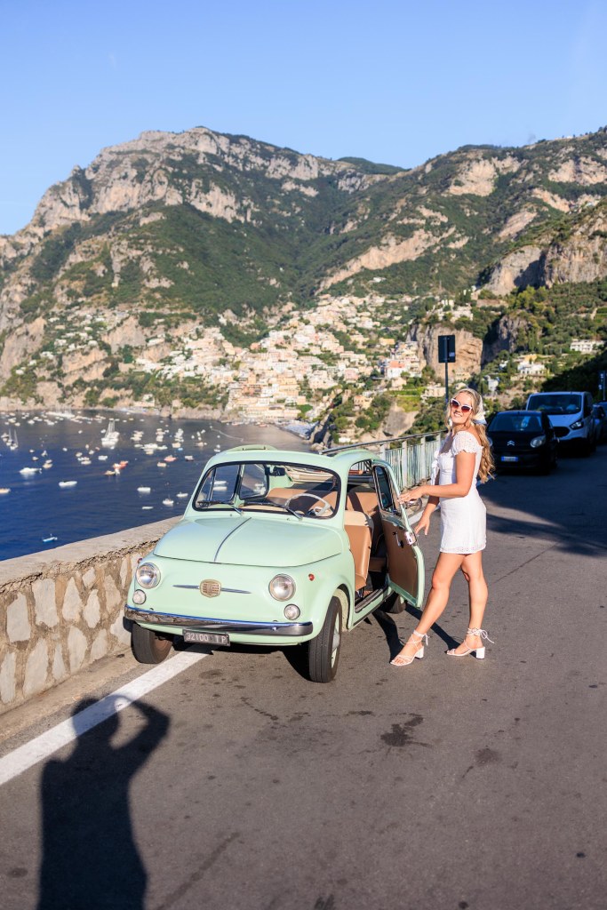 We booked a vintage car tour with Positano Vintage and stopped at some amazing spots along the way. This spot is near the outskirts of the main town near the bus stop. You have to get far enough away from the town to see it in its entirety.