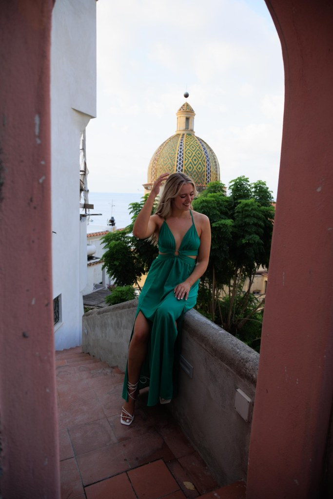 It’s definitely not in my budget to stay at this gorgeous hotel but we tried to snag a few photos inside anyways. Tried to walk straight in to the iconic balcony but could tell the front desk was onto us and the doors were locked. If you do not succeed like us you could always have dinner at the restaurant or just take photos out front like we did. Not many other buildings in Positano are this stunning red.