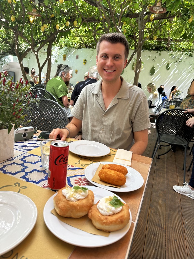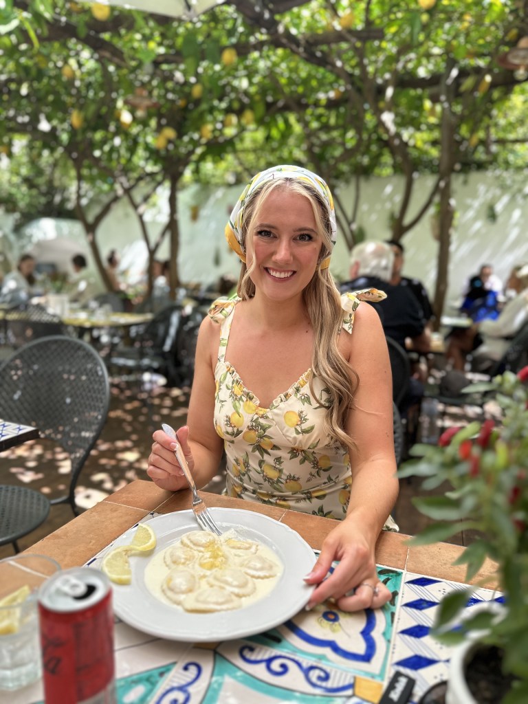 Dining at Pizzeria Donna Stella was an absolute dream and one of my favorite meals in Amalfi. We sat out on the charming patio, surrounded by lush lemon trees with bright yellow lemons hanging overhead, creating the most magical and authentic setting. The food was just as incredible as the atmosphere. We started with arancini, perfectly crispy on the outside and filled with rich, savory goodness. Then came the highlight of the mealβthe lemon ravioli in a creamy lemon sauceβhands down the best Iβve ever had. The balance of citrusy brightness and velvety cream was perfection in every bite. To top it all off, we indulged in lemon zeppole, a light and fluffy dessert that was the perfect sweet finish to an unforgettable meal. Between the incredible flavors, the stunning surroundings, and the warm hospitality, dining at Pizzeria Donna Stella felt like a true Amalfi experienceβone Iβd happily relive again and again.
