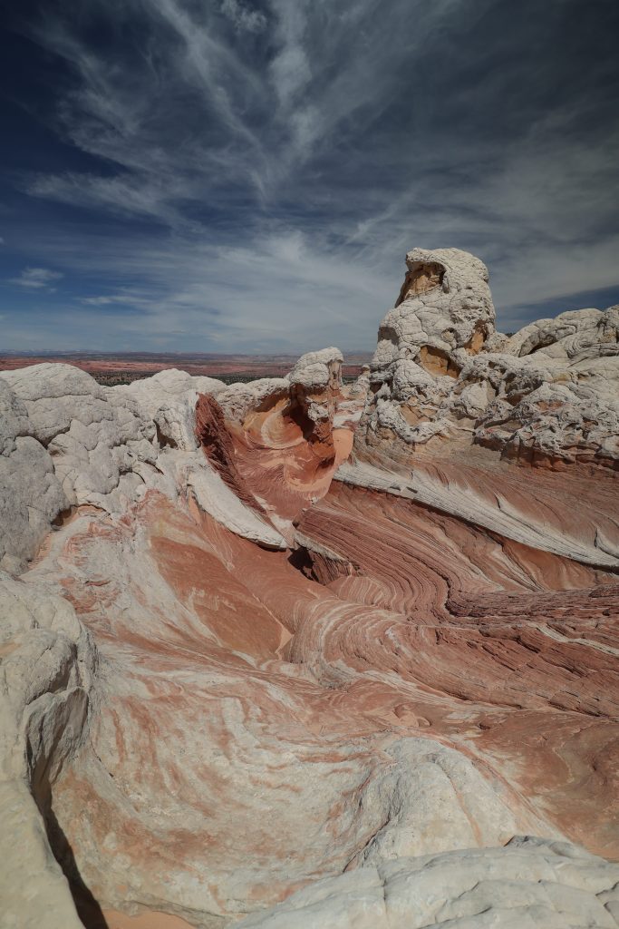 Located in the Paria Canyon-Vermilion Cliffs Wilderness, White Pocket is one of the most unique and off-the-beaten-path destinations in the Southwest. Known for its surreal, swirling sandstone formations, this area is like stepping into another world. Unlike its more famous neighbor, The Wave, White Pocket doesnβt require permits, but it is extreemly challenging to get to even with a 4×4 vehicle. I would highly recomend booking a guide who can take you. We used Paria Outpost and they were great!