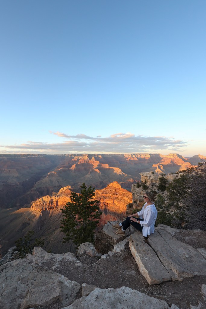 For a spectacular sunset, head to Mather Point. This popular spot gives you a perfect view of the canyon as the sun sets, with the colors of the rock formations shifting in the golden light.