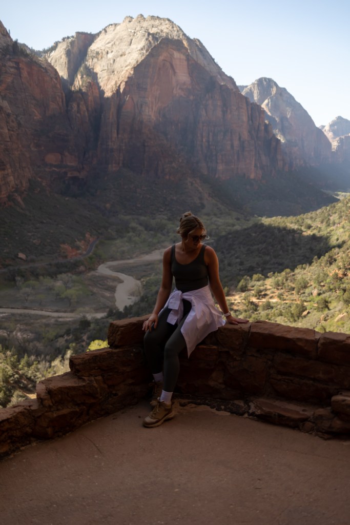 The Zion Canyon Overlook Trail offers fantastic views with a short 0.9-mile round-trip hike. The trail begins on the east side of the Mount Carmel Tunnel with a small parking lot. Plan to park along the road because this is a popular hike. This overlook is easy, with a few flights of initial stairs followed by gradual elevation to the top. The hike will take roughly 25 minutes round trip but plan time to take photos at the top.