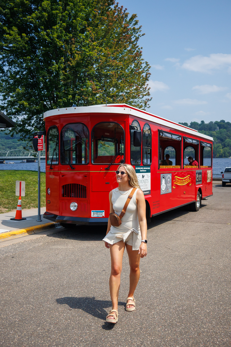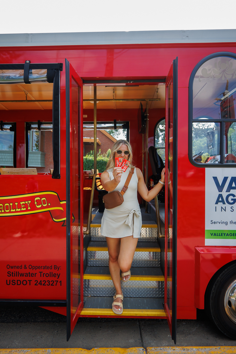 Next, we hopped on the iconic Stillwater Trolley, a bright red open air bus that winds through town while sharing its history. It was the perfect mix of history and sightseeing, and we learned fun tidbits about Stillwater’s past that we never would have discovered on our own.